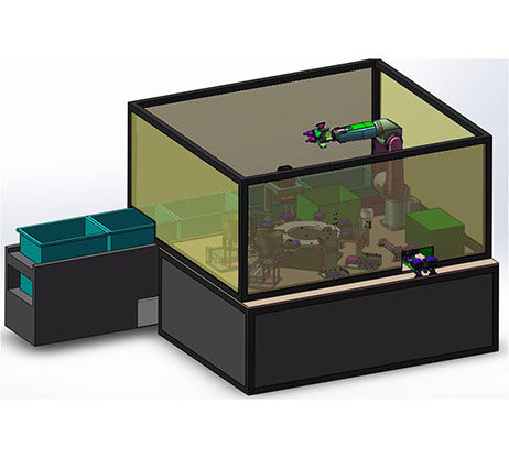 下圖為美斯圖自動化設計一部為國外著名鑄造企業定制的集機器人打磨、切削、檢測、裝箱等一體多功工作平臺在客戶現場工作,此次專業化設計極大節約了客戶的人力、設備、管理等各項成本,獲得客戶的大力肯定。